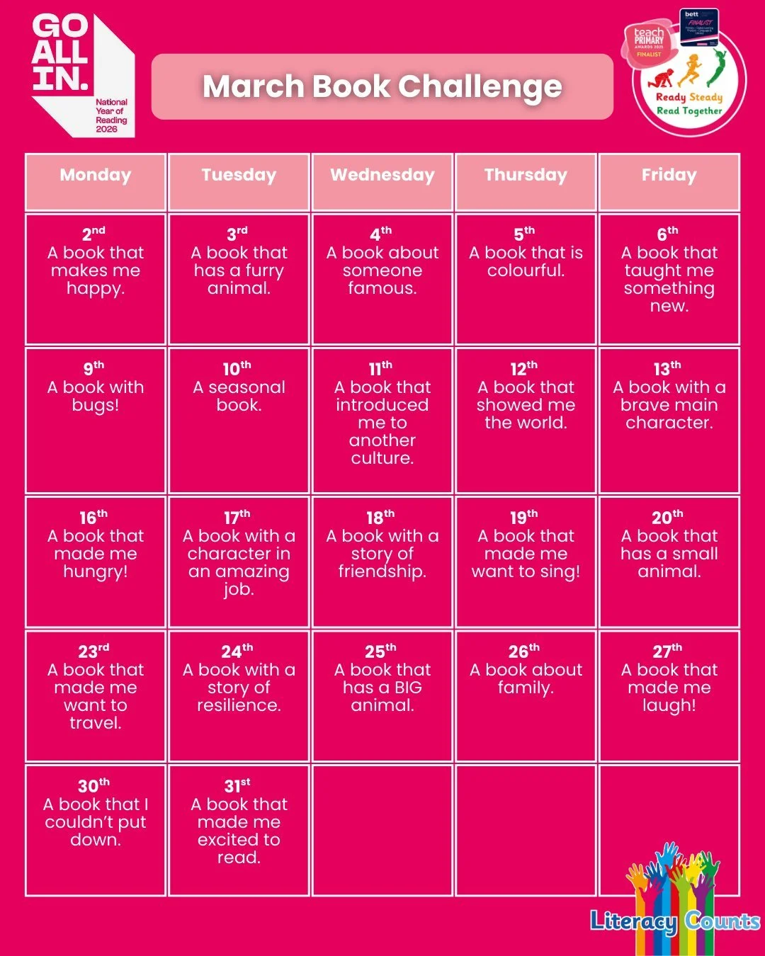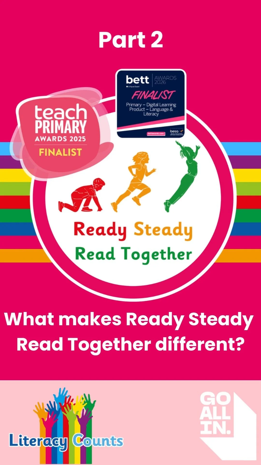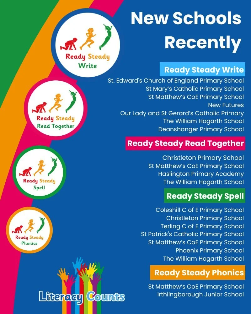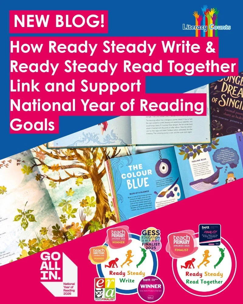 Literacy Counts offers a complete suite of evidence-based literacy programmes for UK primary schools and multi-academy trusts (MATs), designed to raise standards from EYFS to Year 6. Our award-winning, research-informed Ready Steady Literacy resources include a fully resourced primary writing scheme, a validated phonics programme, a structured spelling curriculum, and a game-changing, high-quality shared reading resource - all aligned to the National Curriculum.